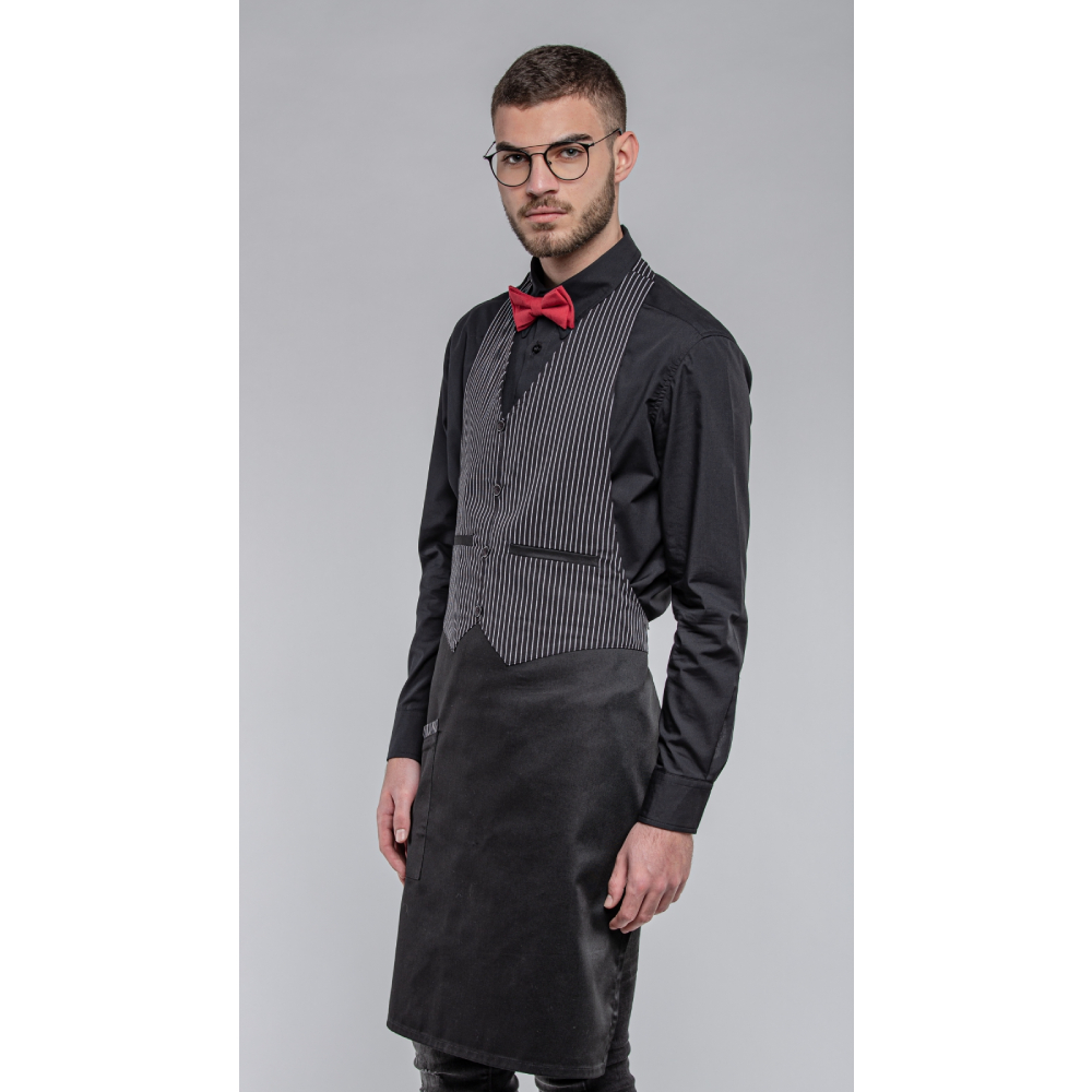 Ποδιά λαιμού Γιλέκο με ’’V’’ και ριγέ ύφασμα στο πάνω μέρος. Δύο κουμπιά για εύκολη ρύθμιση. Δύο τσέπες φιλέτο μπροστά. Μια τσέπη μεγάλη δεξιά. Ελληνικό προϊόν.