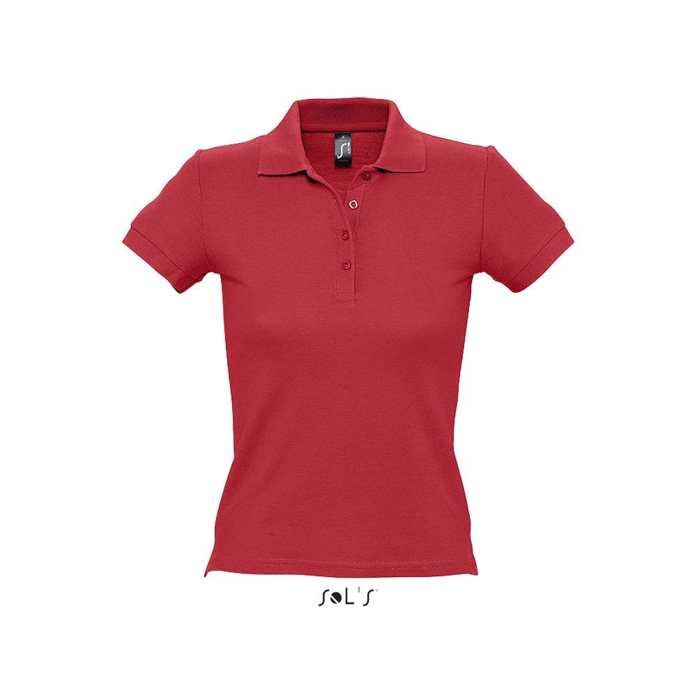 Sol’s γυναικείο t-shirt με κοντά μανίκια και εφαρμοστή γραμμή, πατιλέτα τεσσάρων κουμπιών στο ίδιο χρώμα, ίσιο τελείωμα με πλαινά σχισίματα και ραφές, επιπλέον κουμπί στην εσωτερική ραφή, γιακάς και τελείωμα στα μανίκια από ριπ και φακαρόλα στο λαιμό.