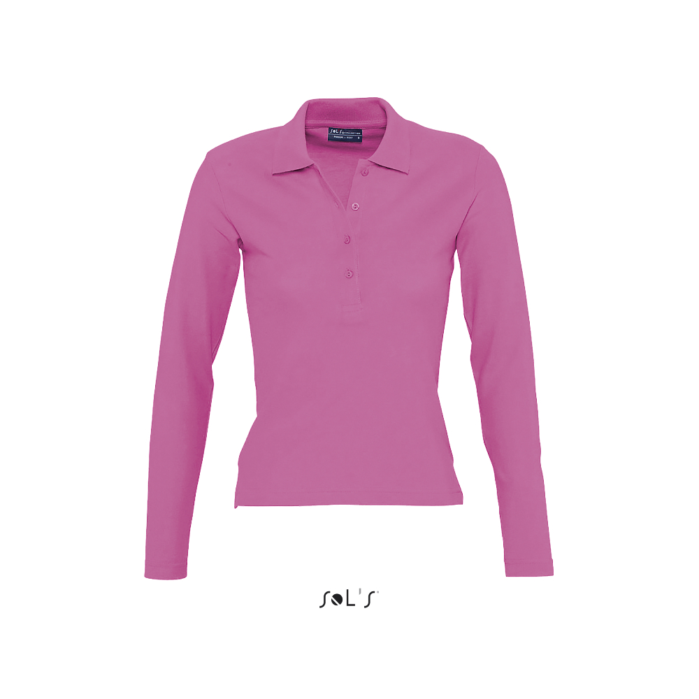 Sol’s γυναικείο πόλο πικέ με μακριά μανίκια, τέσσερα κουμπιά στο ίδιο χρώμα, εφαρμοστή γραμμή, πλαϊνά σχισίματα, πλαϊνές ραφές, γιακά ριπ και φακαρόλα στο λαιμό.
