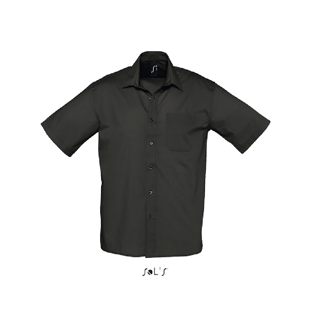Sol’s ανδρικό κοντομάνικο πουκάμισο από ποπλίνα με ενισχυμένο γιακά, τσέπη στο στήθος, πατιλέτα με επτά κουμπιά στο ίδιο χρώμα και δύο πιέτες στην πλάτη.