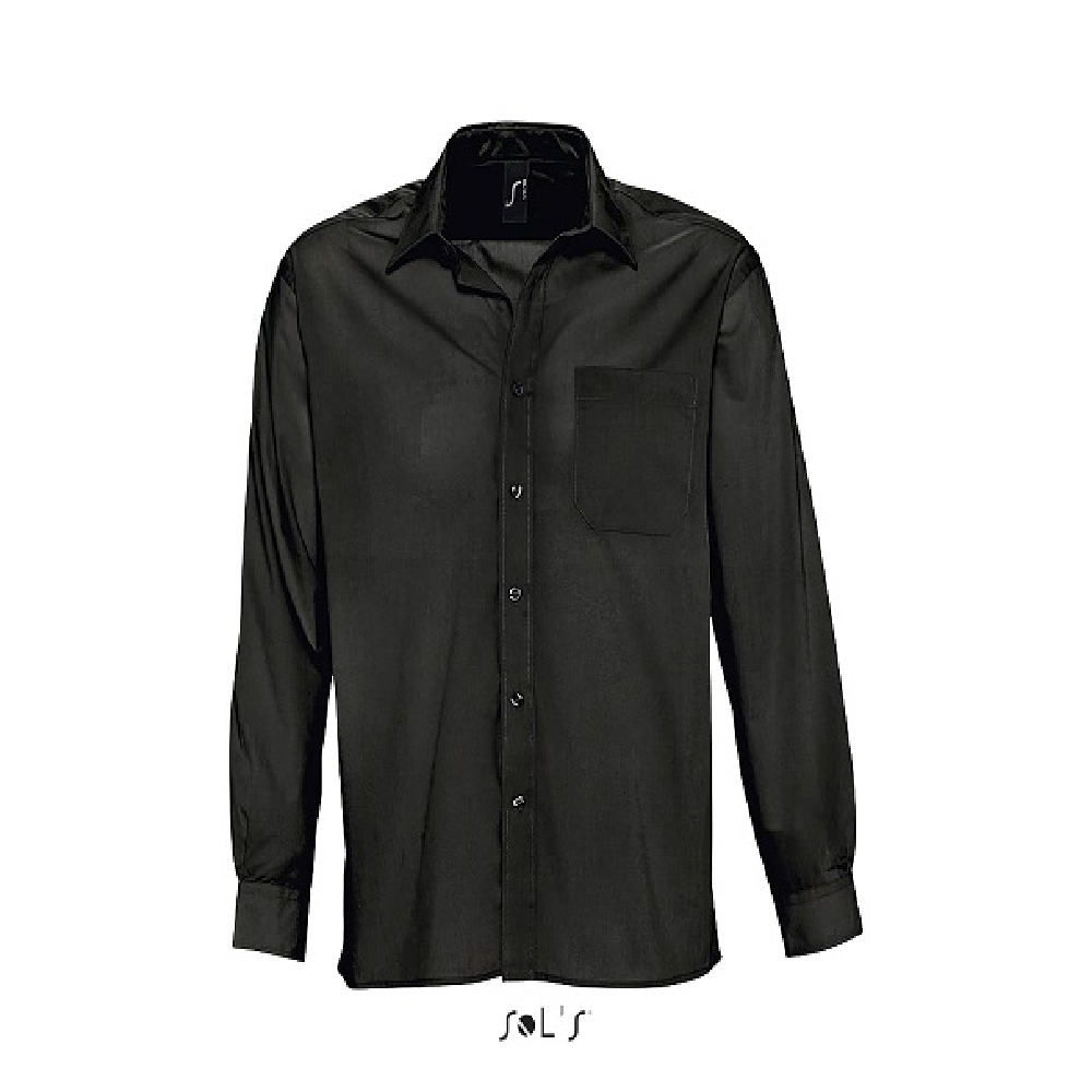 Sol’s ανδρικό μακρυμάνικο πουκάμισο από ποπλίνα με ενισχυμένο γιακά, τσέπη μπροστά αριστερά, πατιλέτα με επτά κουμπιά στο ίδιο χρώμα, ρυθμιζόμενες φαρδιές μανσέτες με δύο κουμπιά, δύο πιέτες στην πλάτη και βαμμένο ύφασμα.